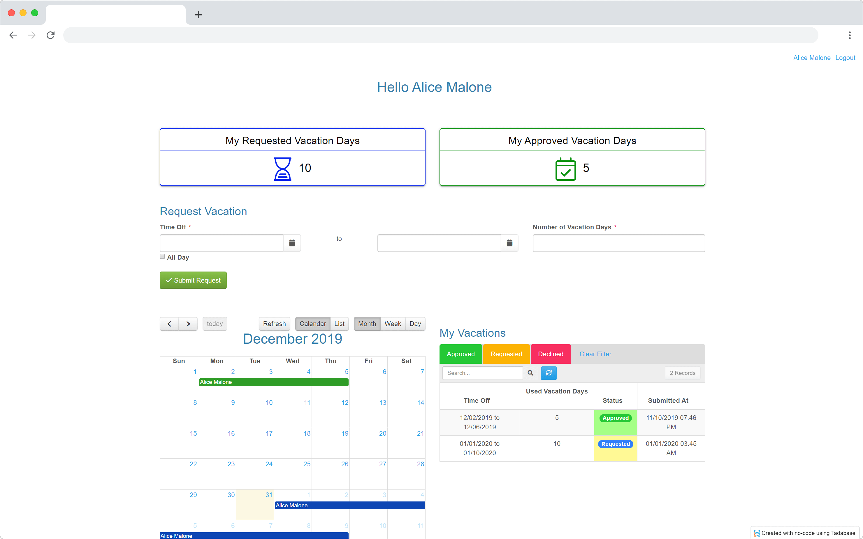 Employees can request time off and track their remaining vacation days. HR can approve or deny time off requests and track all employee scheduling.