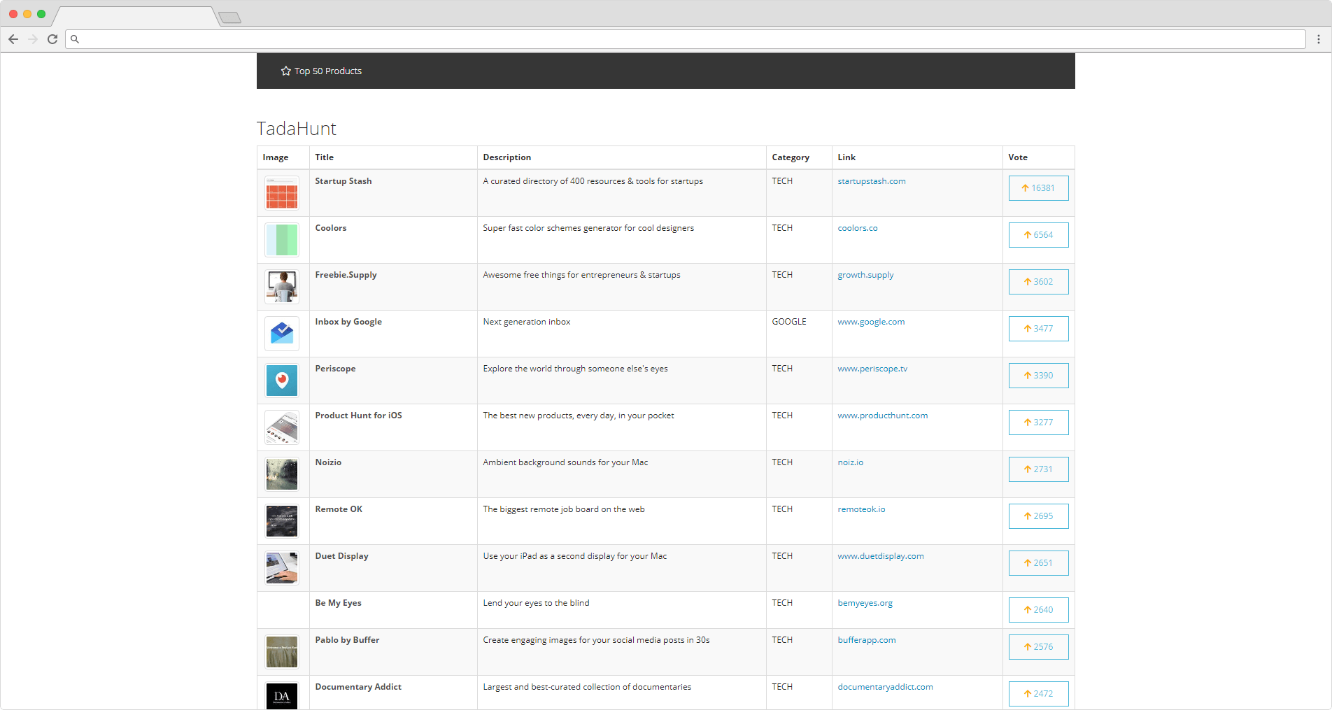Share products and establish their popularity with Tadabase’s product upvoting template. Enable user upvotes to highlight top choices.